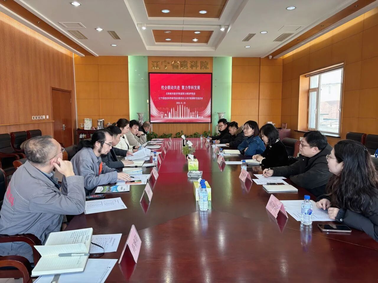 1月29日,太阳集团tyc234cc党总支书记、副院长牛艺,副院长葛述苹带领学院教学团队一行6人,赴辽宁省建设科学研究院有限责任公司开展访企拓岗专项行动。辽宁省建设科学研究院有限责任公司副总经理鞠栋岳,综合办公室主任隋玲玲,城市更新分院院长郑宝华及相关业务负责人接待并出席座谈会议。