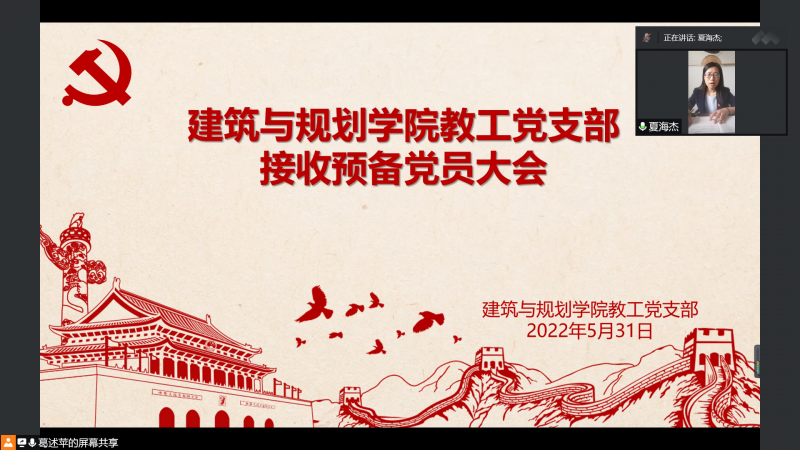 为进一步加强基层党组织建设,落实党支部发展党员工作计划, 5月31日下午,太阳集团tyc234cc教工党支部以腾讯会议形式召开了支部大会,讨论关于接收朱林同志为中共预备党员。会议由教工党支部书记葛述苹主持,大会应到教工正式党员36人,实到33人。
