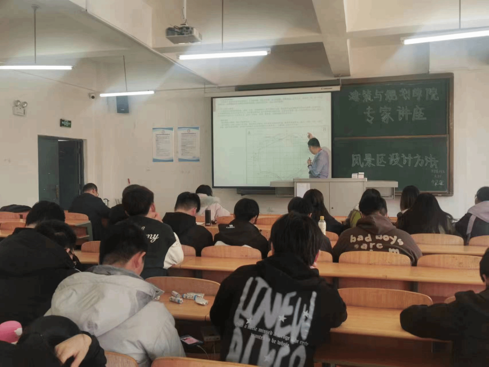迟翔从风景区的概念、分类与特点入手,详细阐述了风景区设计的原则、方法和技巧。并与在场师生深入讨论了在风景区规划与设计过程中如何融合自然环境与人文特色、应用可持续发展理念、优化景观布局与游客体验,强调了规划设施和安全管理的重要性,并从多个角度细致全面地讲解了景观设计的关键步骤。他强调,风景区设计应充分考虑自然环境的保护与利用,注重人文关怀与地域特色的融合,以创造具有独特魅力的景观空间。此外,迟翔还结合大量实际案例,深入剖析了风景区设计的成功案例与不足之处。他鼓励师生们要勇于创新,不断探索新的设计理念和方法。