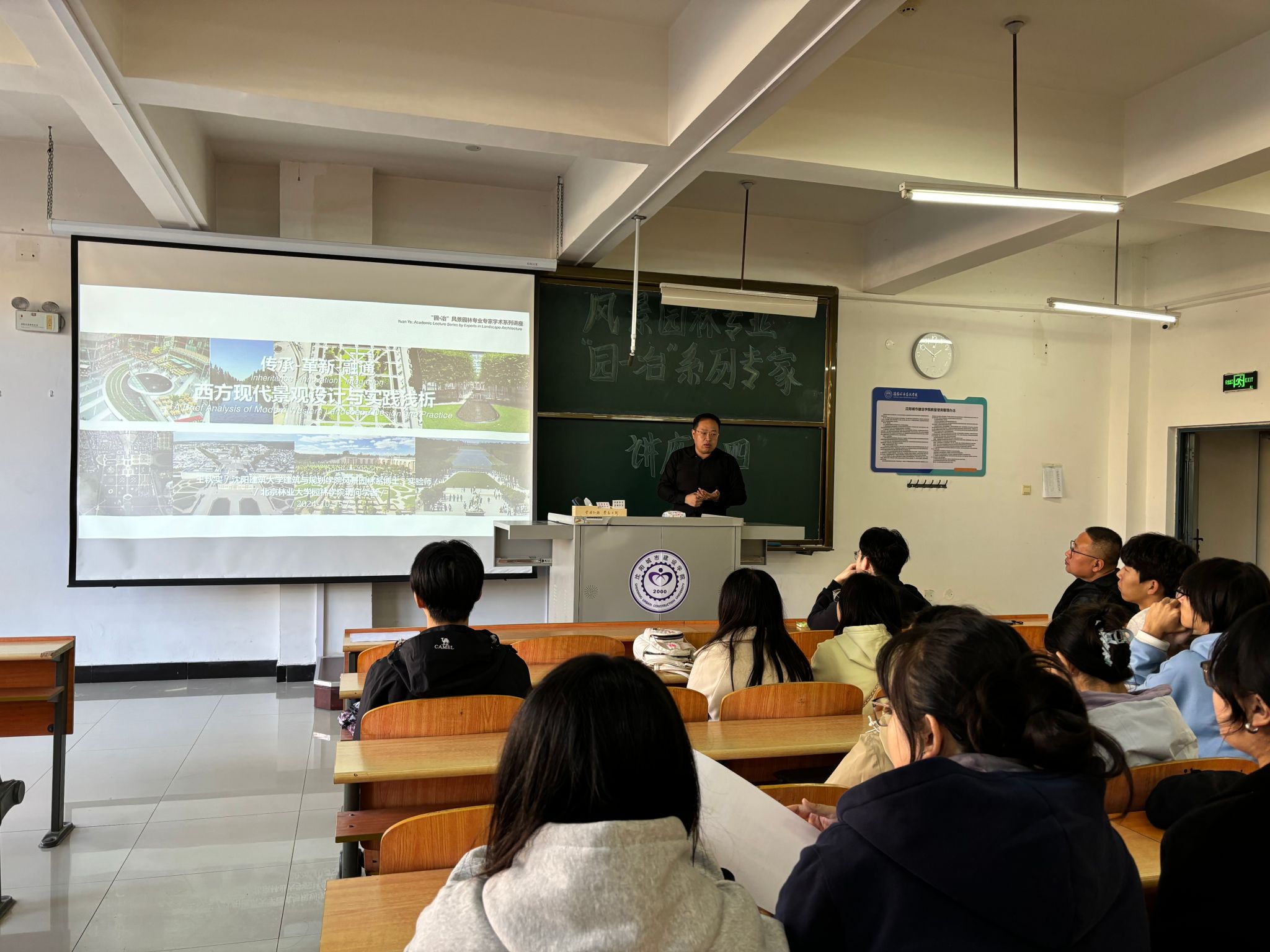 讲座中,王秋实以传承、革新、融通为框架,全面而系统地剖析了西方现代景观设计体系。他凭借深入浅出的讲解和丰富翔实的第一手资料,为听众打开了新的视野,不仅深化了大家对西方园林史的认识,还有效地促进了学生专业知识的积累与学术视野的拓宽。