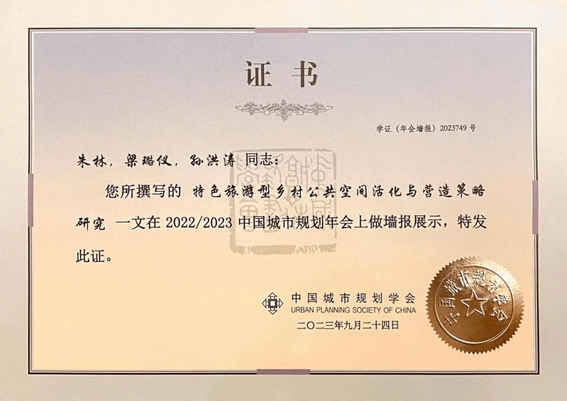 会上,朱林等人所撰写的《特色旅游型乡村公共空间活化与营造策略研究》文章进行了墙报展示。