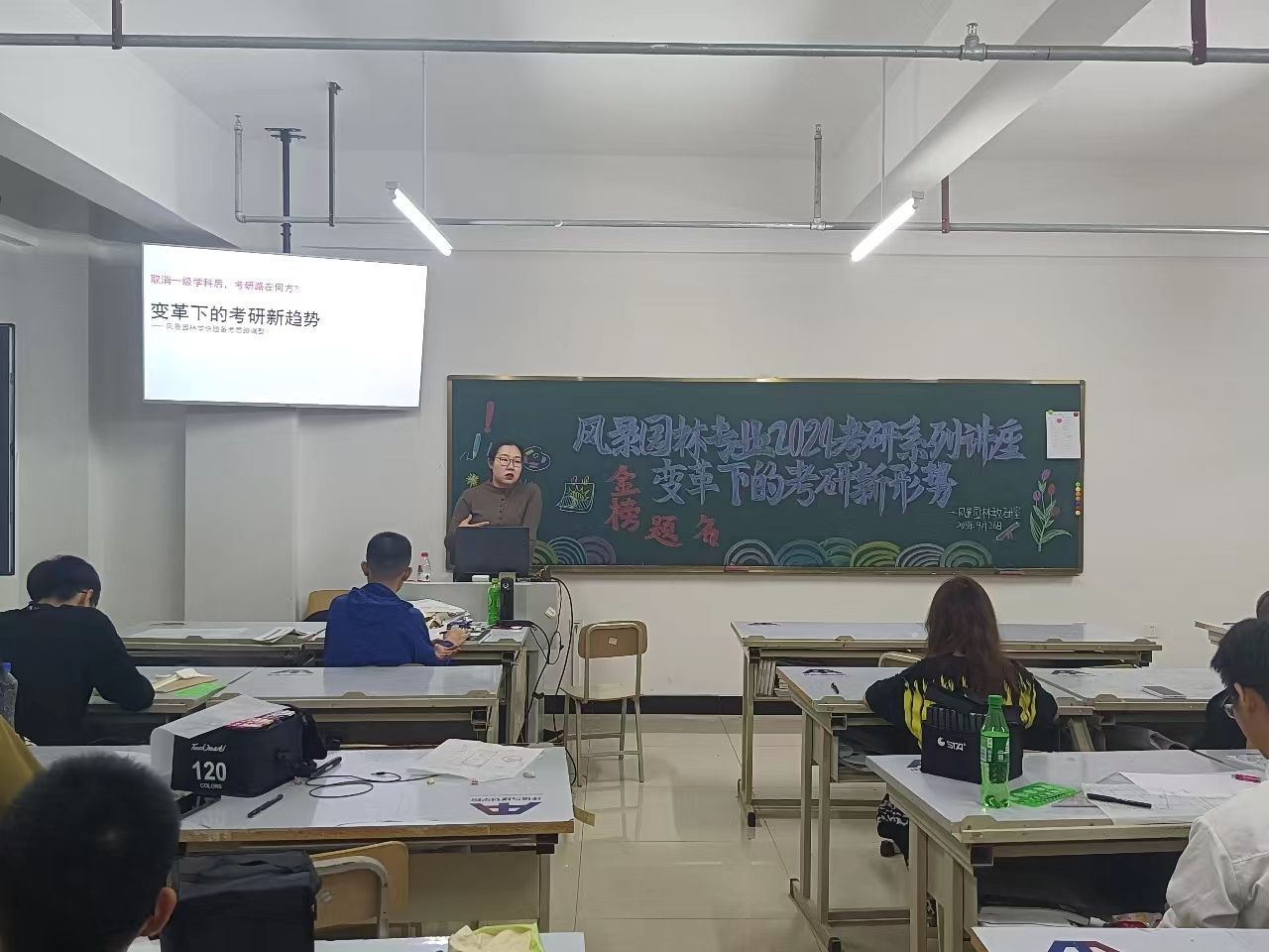 讲座以风景园林考研新变化为主题,介绍了近年来考研环境的变化和新趋势,并针对风景园林专业考研快题设计的内容,提供有效的备考思路。主讲人深入浅出的详细介绍,让学生们对风景园林专业硕士点设置、不同高校教学差异有了更加深入的了解,收获了实用的备考思路和备考方法。
