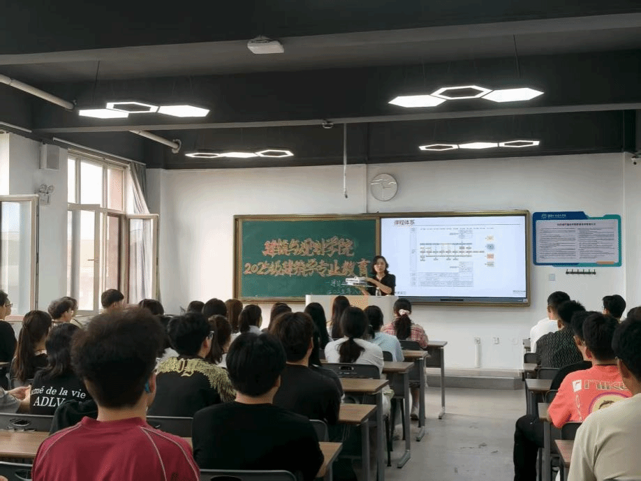 会上,三位教师紧扣“升学服务就业”主线,展开针对性讲解。葛述苹紧密围绕建筑学行业人才需求趋势,在对专业人才培养目标与课程体系进行介绍时,着重阐述了针对考研学生的专项辅导机制,明确地指出升学对于提升就业竞争力的核心作用;同时,系统且深入地讲解了专业独特的学科优势以及广阔的就业前景,助力新生全面且系统地建立起对本专业及未来职业方向的整体认知。