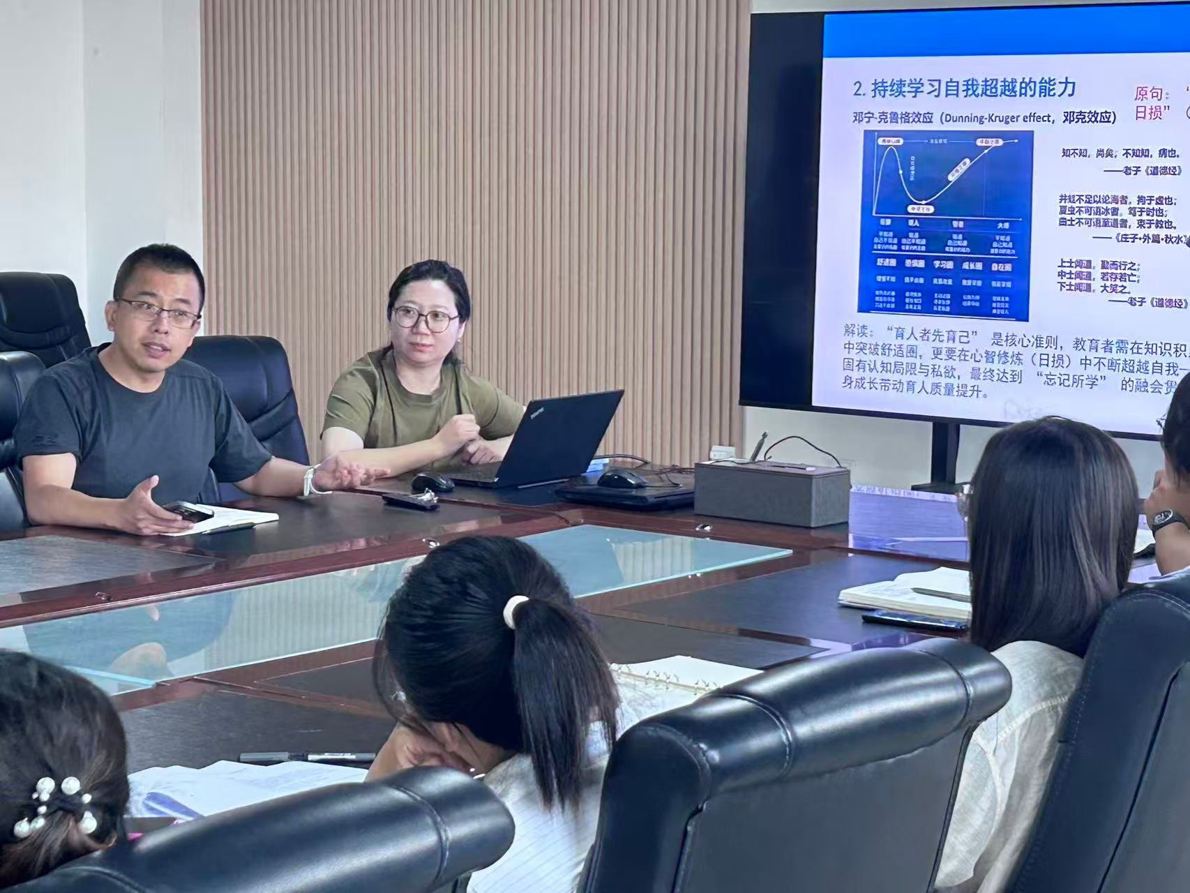 9月11日,太阳集团tyc234cc在创新楼506会议室召开北京大学研修分享交流会。会议聚焦未来课堂破局、未来教师养成及课程教学改革三大议题,为教师搭建学习交流平台,助力数智时代教育教学理念更新与实践创新。副院长麻洪旭携全体教师参会,专任教师郝妙琦担任主讲人。