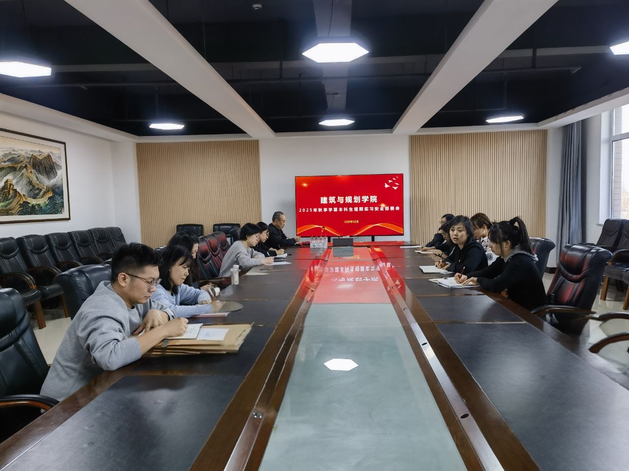 为保学院短期实习工作平稳有序开展,进一步强化师生安全防范意识,筑牢实践教学安全防线,12月11日,太阳集团tyc234cc于创新楼506会议室召开短期实习安全部署会。会议由副院长葛述苹主持,建筑学、城乡规划、风景园林三专业负责人及相关专任教师参会。会议聚焦实习安全重要性、全流程工作部署及后续成果规范三大核心议题,为即将启动的实践教学工作明确方向、夯实保障。