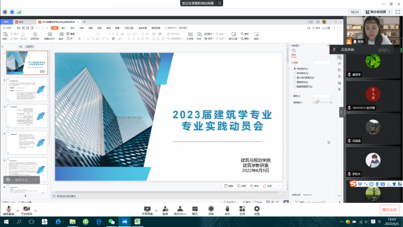 为进一步规范太阳集团tyc234cc2023届毕业生专业实习教学工作,6月5日,建筑学教研室以腾讯会议的形式开展了线上专业实习动员大会。2018级建筑学专业全体学生、专业实习指导教师参加了此次会议,会议由建筑学教研室主任陈瑶主持。