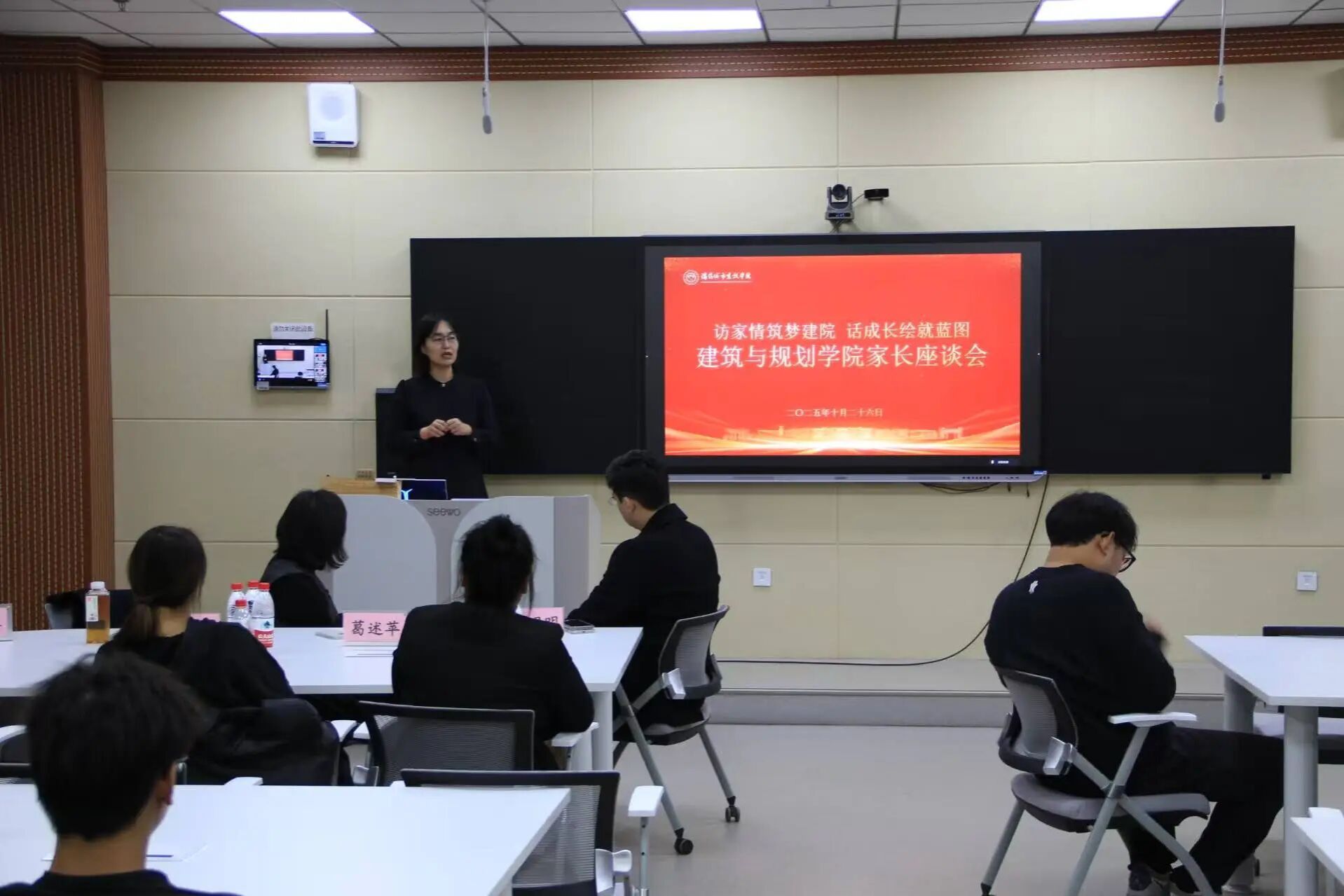 为搭建家校协同育人桥梁,精准对接家长与学生的职业发展期待,共同探讨以升学实现高质量就业的成长路径。10月26日,学院在创新楼101、105智慧教室以“线上+线下”分专业召开家长座谈会。学院党总支书记、副院长牛艺,副院长葛述苹,城乡规划教研室主任郝燕泥、风景园林教研室专任教师郝轶及全体辅导员出席会议,100余名学生家长通过线上或线下方式参会,会议由牛艺与学院团委书记、学生办公室主任陆鹏程分别主持。